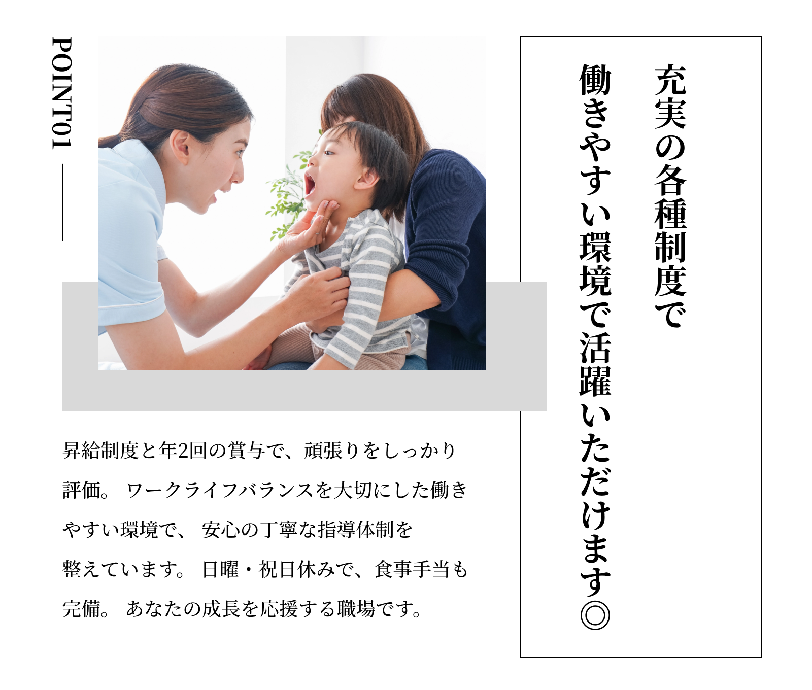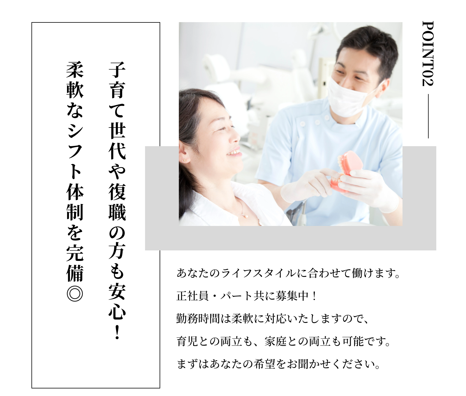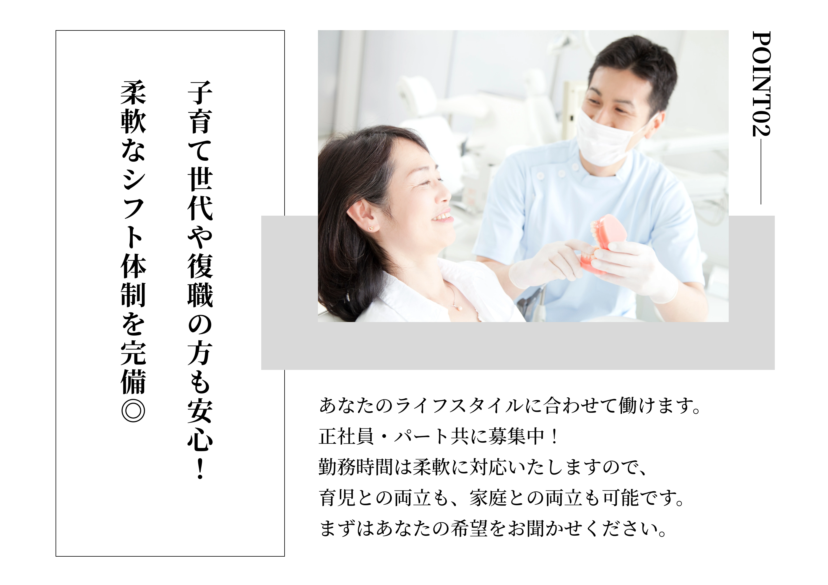 【必須】歯科衛生士免許 【歓迎】経験者歓迎(新卒も可) |